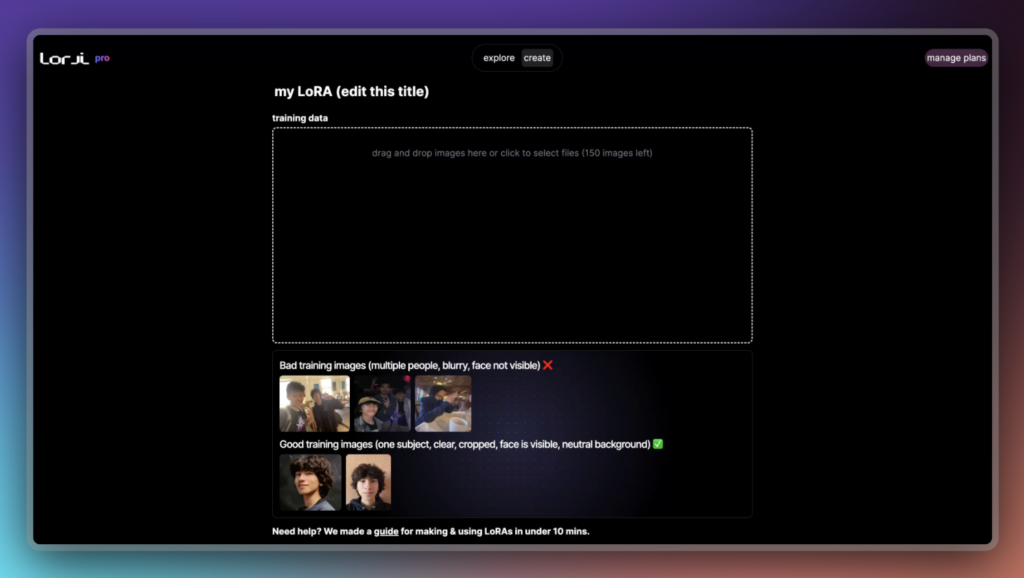 lorai is a website that lets creatives make LoRAs (diffusion model “extensions”) without using google colabs or tricky web UIs.
