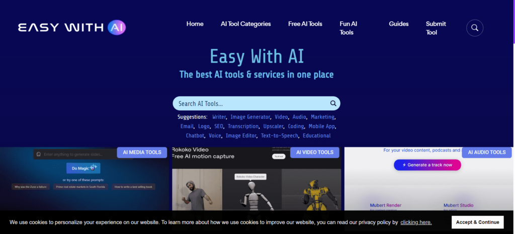Easy With AI is the ultimate directory for discovering and exploring the world of AI tools and services. With this comprehensive inventory, users can easily find the top AI tools and services online, making it simple to get started with AI today.