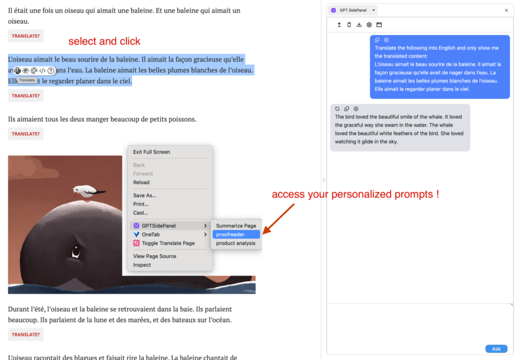 GPT SidePanel can let you custom your own prompts and quickly access them in any website