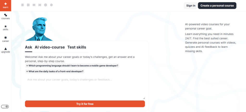Save hours searching for an answer, watching videos, and long reads. An AI-mentor will help you learn everything you are interested in minutes 24/7, find your interests on Youtube, suggest the best possible career paths, and help close blind spots in your skills.