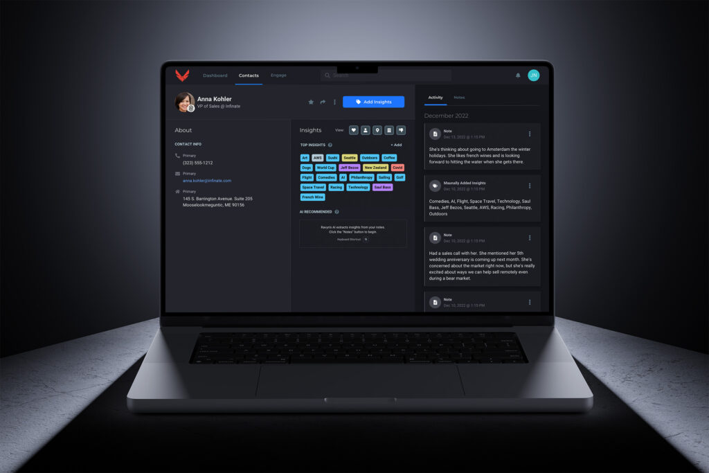 Ravyn's AI automatically captures and categorizes insights directly from your notes. As you capture insights, Ravyn automatically builds next-gen client profiles that fuel deeper relationships and meaningful engagement. Ravyn is the only sales platform in the world that provides a more complete and human view of your clients so you can turn cold business contacts into happy clients for life.