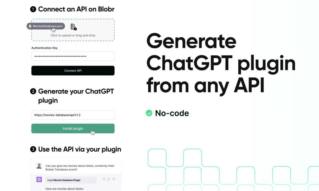 Turn any API into a secured ChatGPT plugin in 2 minutes. Filter and Manage who accesses to your APIs to ensure data is kept safe. Query APIs through ChatGPT for a better AI experience. You can manage rate limits and monetize your ChatGPT plugins.