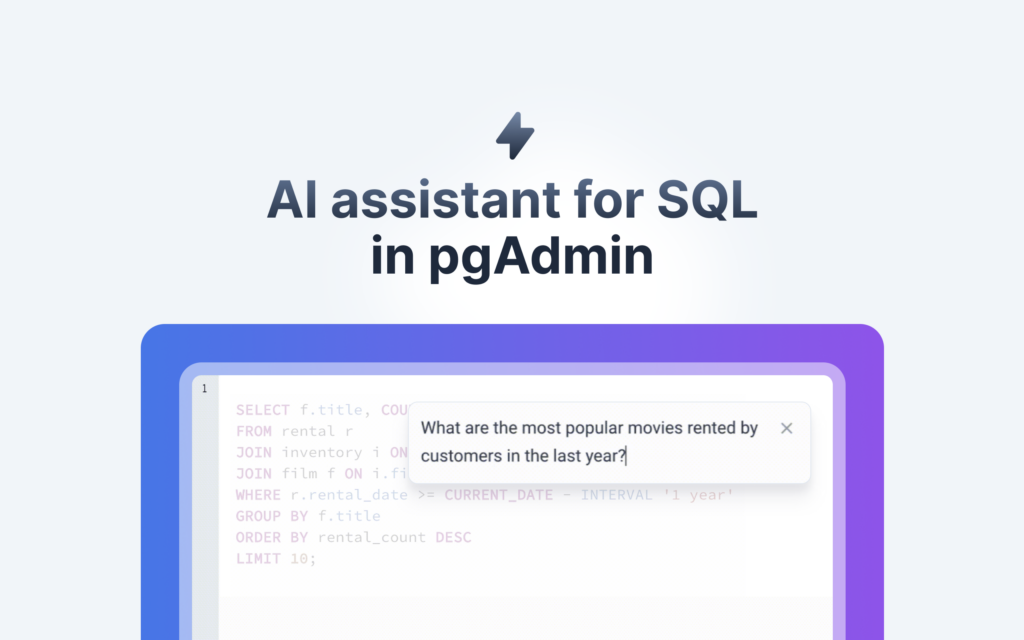 pgAssistant is a Chrome extension that allows users of pgAdmin write SQL queries using AI.