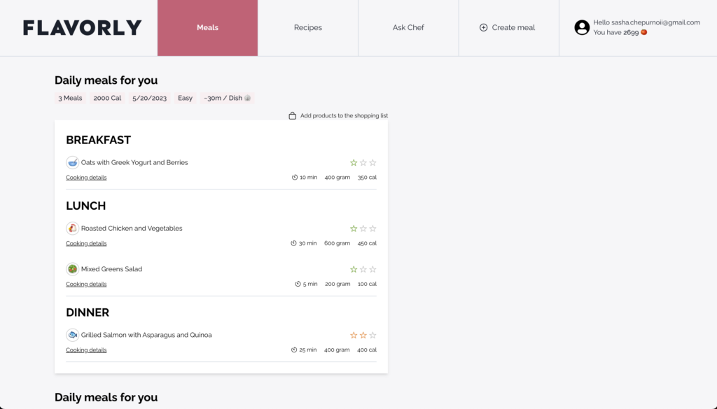 FoodAI.app is a web app that generates cooking recipes with AI. It uses a GPT-3 model trained on a dataset of 1.5 million recipes.