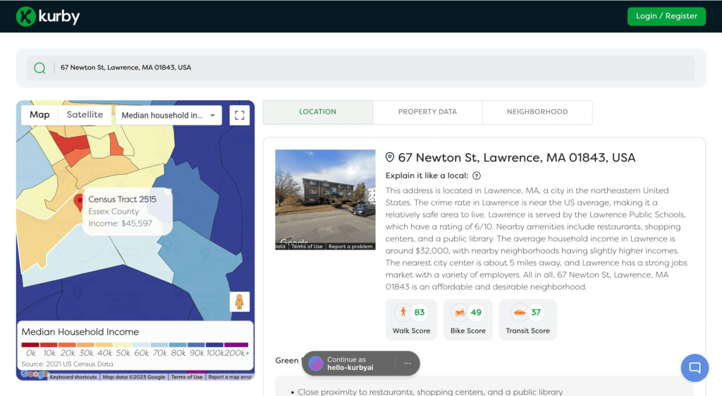 3. Find the best neighborhood for your lifestyle and budget with Kurby’s AI neighborhood data.