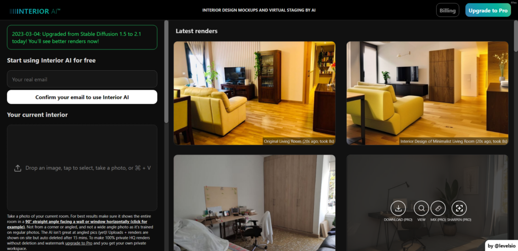 Get interior design ideas using Artificial Intelligence and virtually stage interiors for real estate listings with different interior styles.
