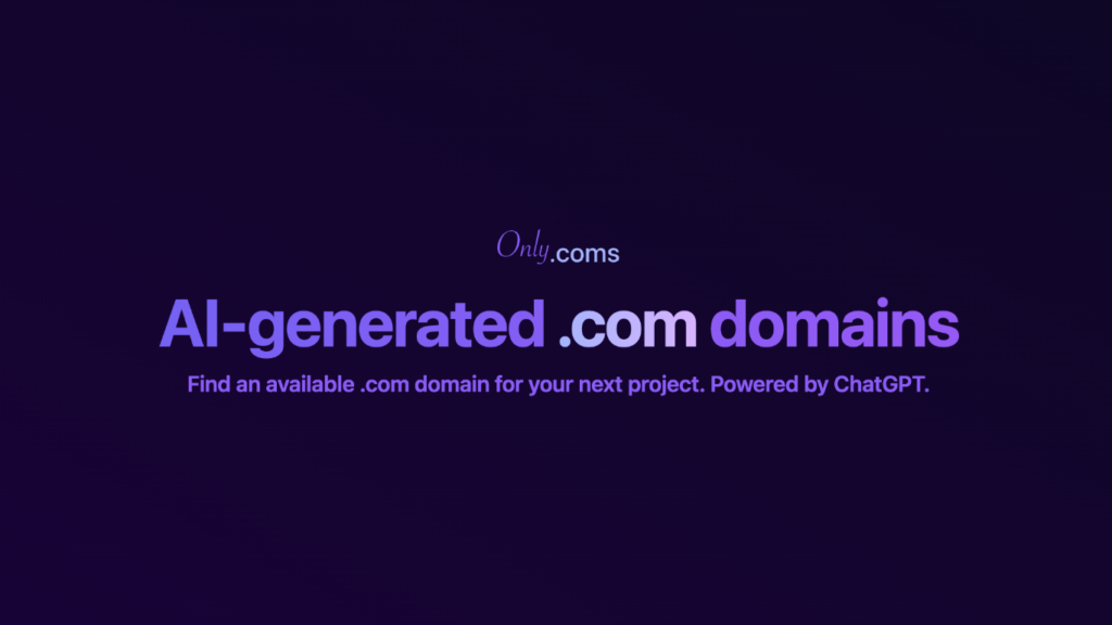 Only .coms uses ChatGPT to find original and available .com domain names for your next project