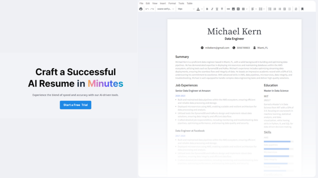 Job Seeker with Limited Time: Create professional resumes and prepare for interviews quickly.