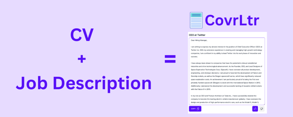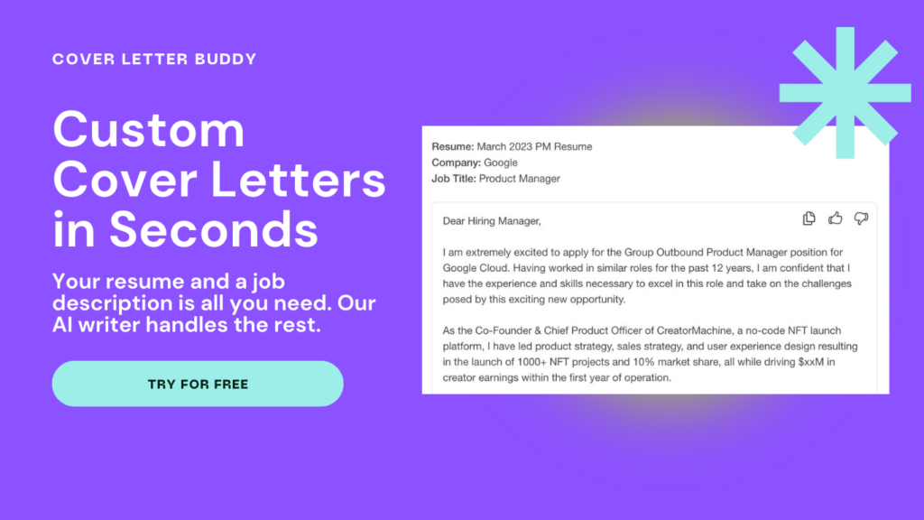 Cover Letter Buddy helps you generate customized cover letters for each job application in less than 20 seconds. Your resume and a job description are all you need. Our AI writer handles the rest.