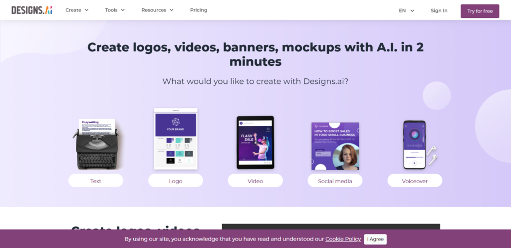 Try Designs.ai for free and create anything online in 2 minutes! Make a logo, video, social media banner, business card, flyer, mockup and more with AI.