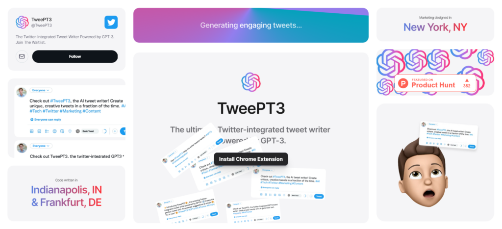 TweePT3 is the first Twitter-integrated, GPT3 powered tweet writer! Generate engaging, exciting tweets in seconds with the click of a button.