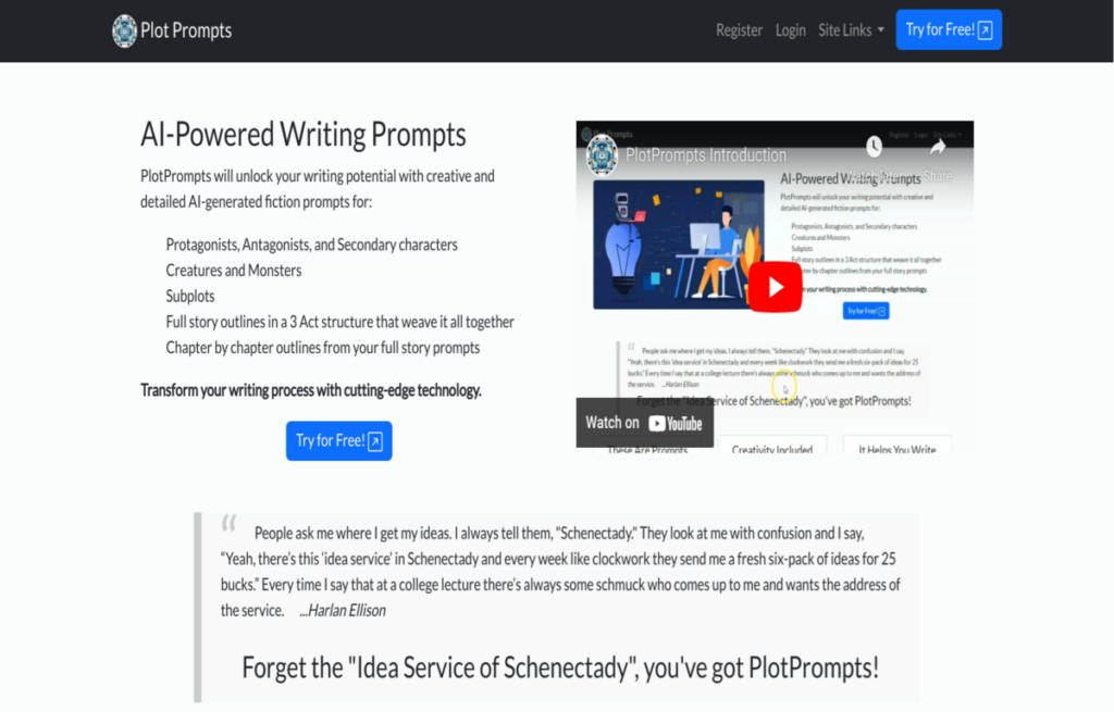 AI-Powered fiction story plot, subplots, and character generating app that weaves them all together in linear outlines for writers.