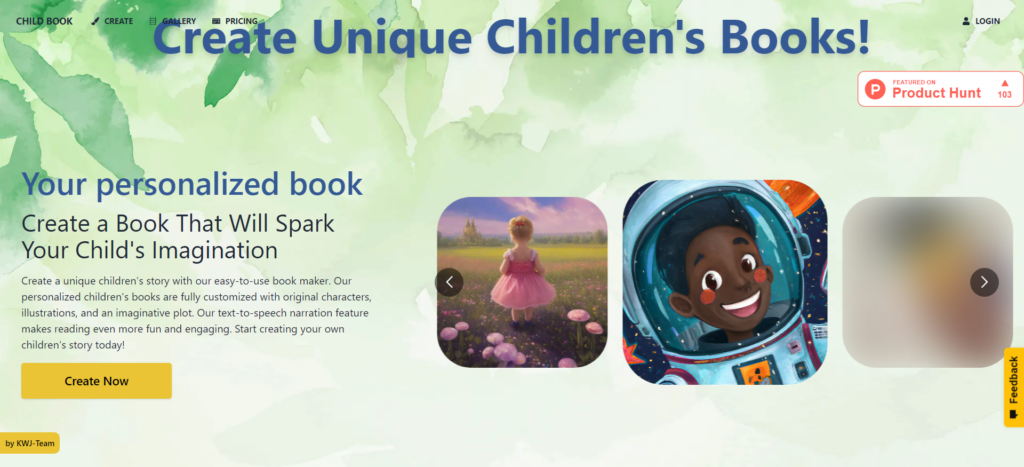Storywizard uses AI to help you generate astonishing stories for children with vivid images and beautiful plots.