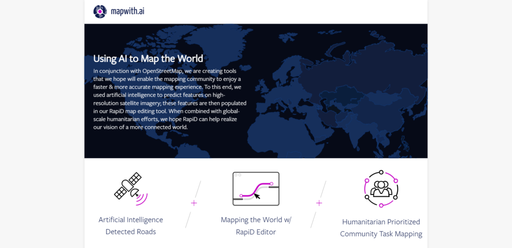 In conjunction with OpenStreetMap, we are creating tools that we hope will enable the mapping community to enjoy a faster & more accurate mapping experience. To this end, we used artificial intelligence to predict features on high-resolution satellite imagery; these features are then populated in our RapiD map editing tool. When combined with global-scale humanitarian efforts, we hope RapiD can help realize our vision of a more connected world.