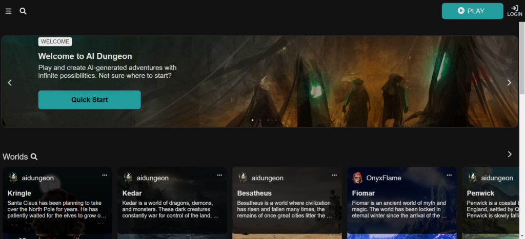 AI Dungeon, an infinitely generated text adventure powered by deep learning