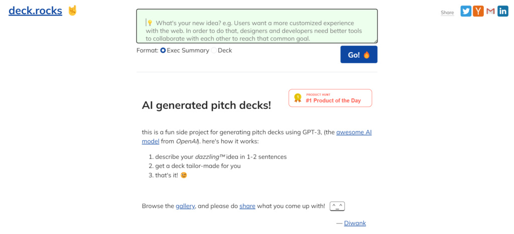 deck.rocks: Generate pitch decks using GPT-3