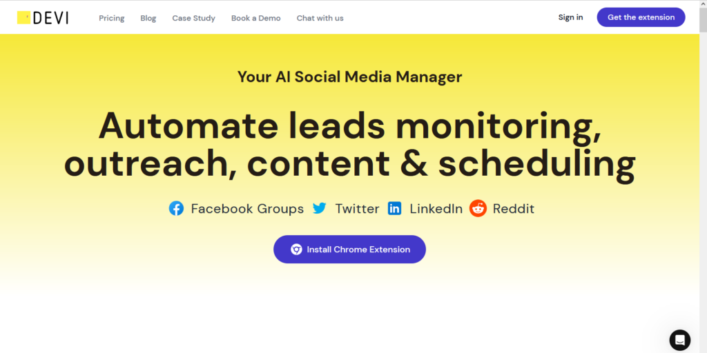 Devi is an AI Social Media Manager that automates lead monitoring, outreach, content & scheduling on social media platforms. Devi lets you monitor keywords in private and public Facebook groups, LinkedIn, Twitter, and Reddit. It also helps you with content creation and scheduling for your social media accounts.