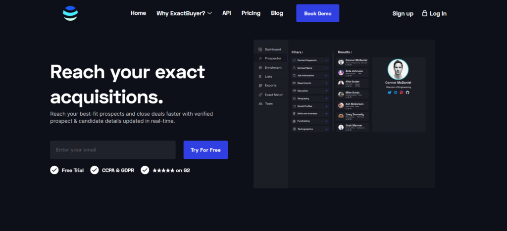 ExactBuyer Search enables sales, recruiting, and marketing teams to find their perfect customers, ideal hires, partners, or acquisition targets by searching the way they speak.