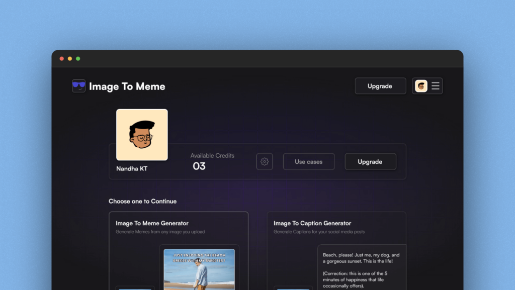 Automatically converts user’s uploaded images into funny memes using AI.
