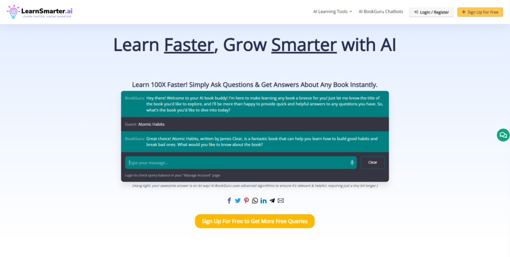 LearnSmarter.ai redefines your learning experience with AI book insights, personalized recommendations, simplified explanations and chatbot for in-depth answers.
