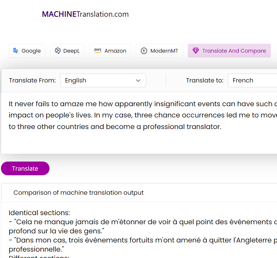 MachineTranslation.com analyzes, compares and recommends machine translation engines using GPT and other sources