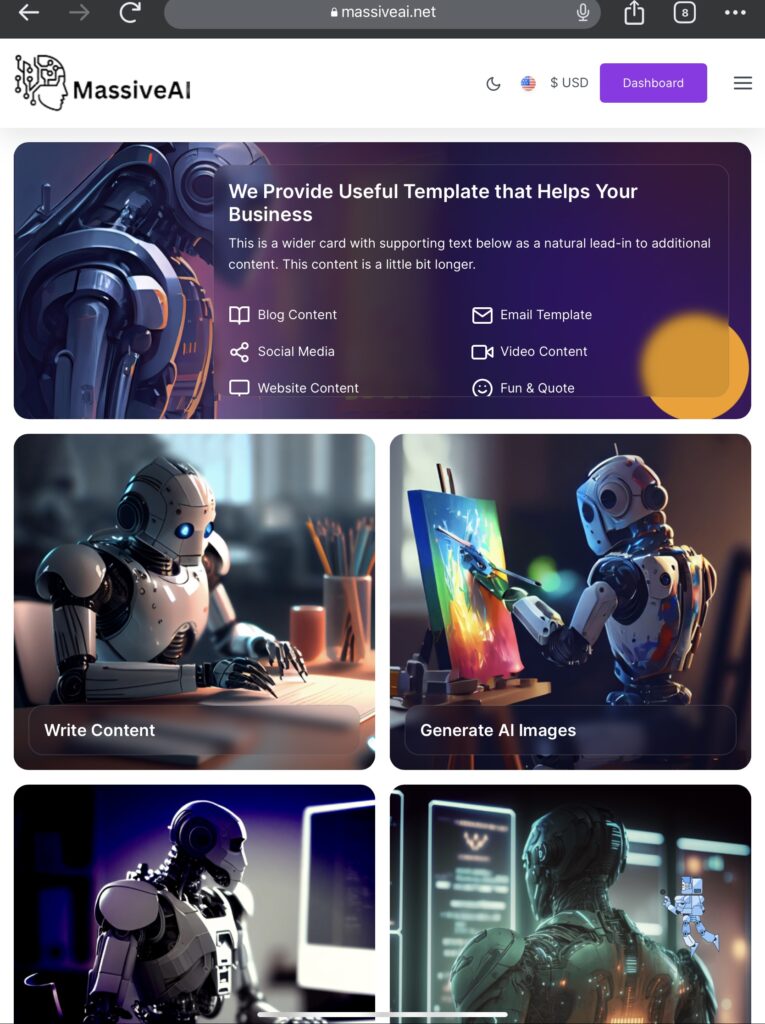 Our AI-powered tool, MassiveAI, revolutionizes content creation by generating high-quality text and images quickly and efficiently. It leverages the power of artificial intelligence to deliver tailored and engaging content that meets the specific needs of businesses. With MassiveAI, businesses can overcome writer’s block and effortlessly produce captivating content for various purposes, including marketing, social media, and digital publishing. Experience the future of content creation with MassiveAI and unlock your creative potential.