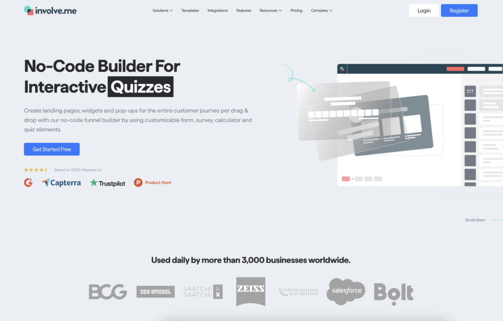 involve.me is a no-code funnel builder for interactive surveys, quizzes, calculators and forms, with AI-powered analytics. It helps you to speed up your data analysis and report generation and gain powerful customer insights.