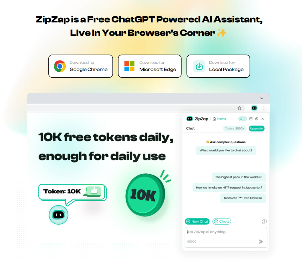 ZipZap is a free ChatGPT powered AI assistant that can be summoned from the corner of your browser anytime.