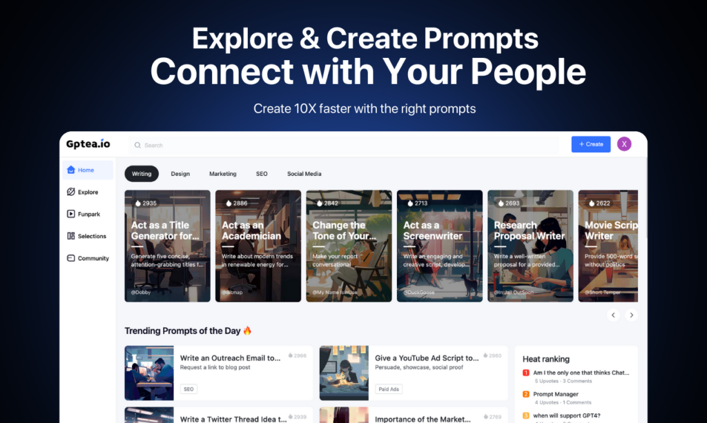 GpTea - prompt potions brewed to unleash ChatGPT's creative powers. Discover, share and upvote the best prompts. Never struggle for words again, library of prompts to spark ideas.