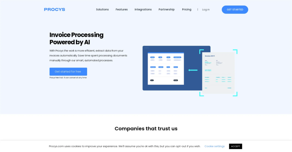 Procys is a technology company that specializes in providing document processing services using artificial intelligence (AI). They offer automated solutions that can extract data from invoices and other documents, allowing businesses to streamline their document processing tasks and improve operational efficiency. By leveraging AI, Procys' services can significantly reduce the time and resources required for manual data entry and help minimize the risk of errors in document processing. Their services are particularly useful for businesses that process a high volume of invoices or other documents on a regular basis, as they can help to streamline these workflows and save valuable time and resources. Overall, Procys' AI-powered document processing services offer businesses a powerful tool for improving productivity and streamlining their operations.
