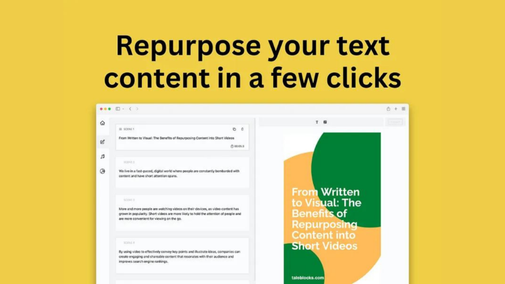 Turn text into compelling videos. Use AI to generate script, voiceover text and match media to text. Taleblocks uses text-to-speech technology to generate a video file of the spoken text in the desired voice and tone.