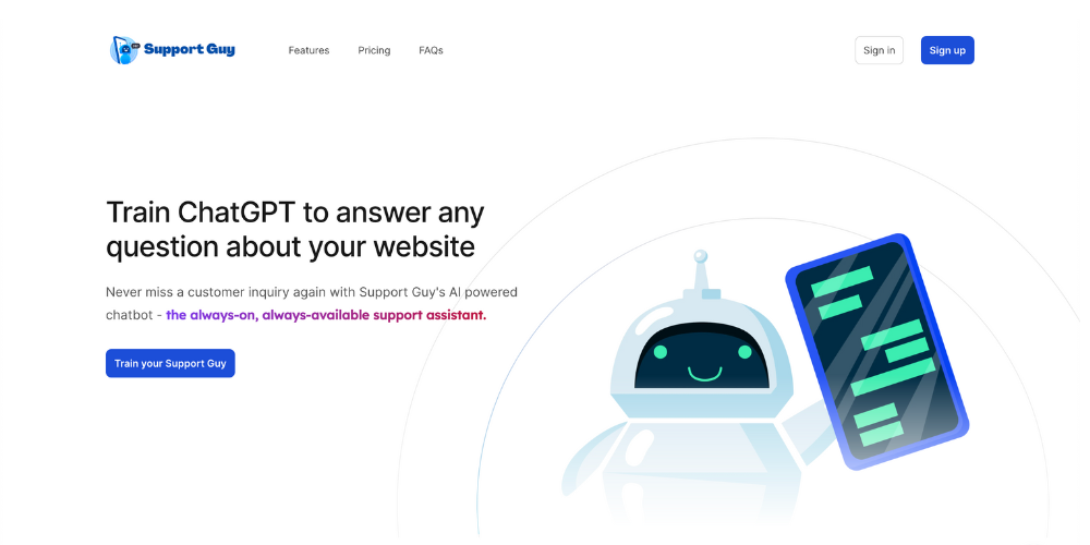 SupportGuy is a cutting-edge customer support platform powered by ChatGPT, designed to provide businesses with 24/7 customer support. With SupportGuy, businesses can train their chatbot using their websites or documents to ensure their customers get the answers they need quickly and easily. The platform also offers customizable themes, multi language support and powerful analytics to continually improve their chatbot. Additionally, SupportGuy's hybrid support feature allows businesses to pause the AI and have their support team take over any conversation whenever they're available, making it a flexible and personalized customer service solution. With flexible pricing plans, SupportGuy is the perfect solution for businesses of all sizes.