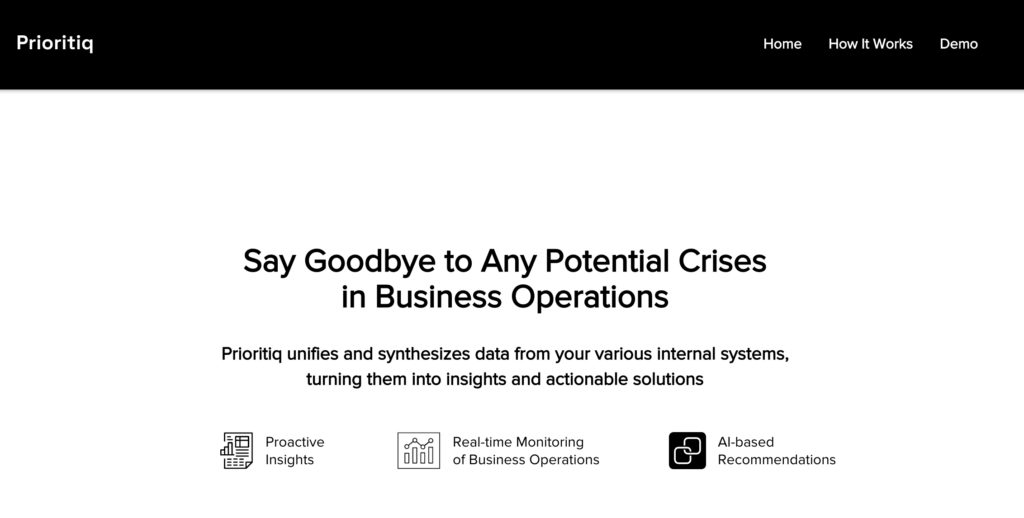 Proritiq synthesizes volumes of siloed data and info, turning it into insights and solutions to guide companies in the right direction. We identify potential business operations issues and make relevant recommendations, preventing scalations from hapening