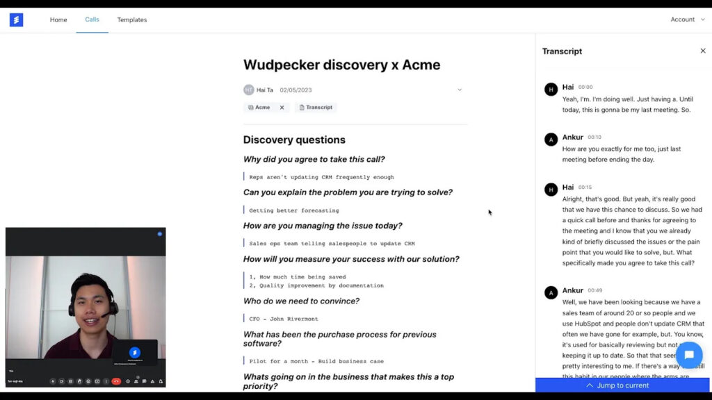 - Automatic note-taking: Wudpecker joins every call, records, transcribes, and makes GPT-powered notes automatically.
