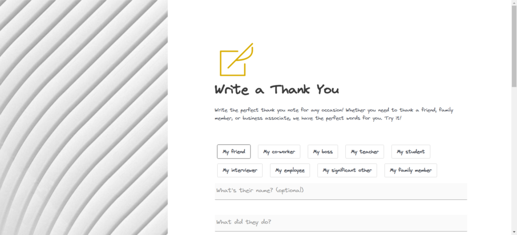 Write the perfect thank you note for any occasion! Whether you need to thank a friend, family member, or business associate, we have the perfect words for