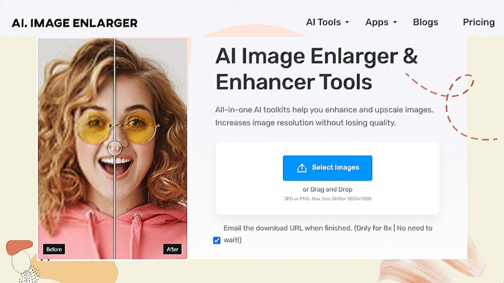 Imglarger is a web app that increases image resolution and enhances visual effects using AI technology. It offers a lot of powerful tools to enhance pictures without losing quality. With imglarger, you can sharpen a blurry image, retouch a face portrait, reduce noises, remove unwanted elements, and resize images.