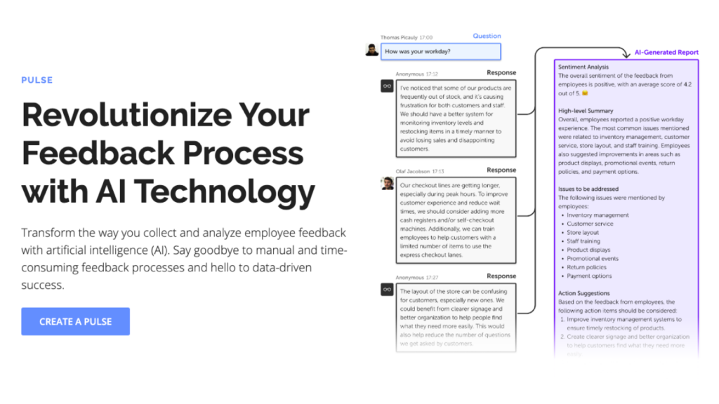 Soon Pulse helps you collect and analyze employee feedback with artificial intelligence