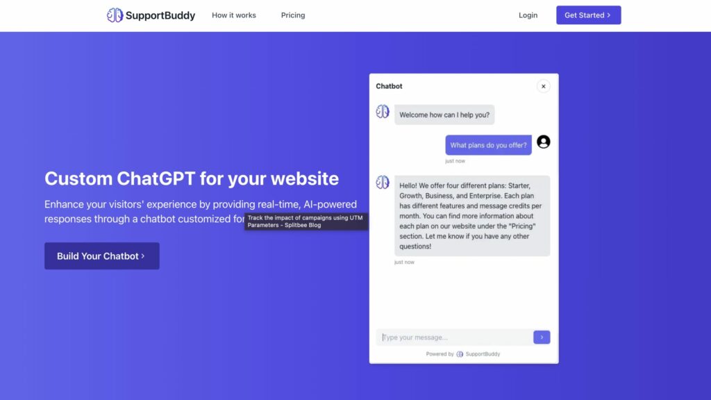 Create a personalized chatbot for your website’s content with SupportBuddy’s AI-powered tool, without the need for coding.