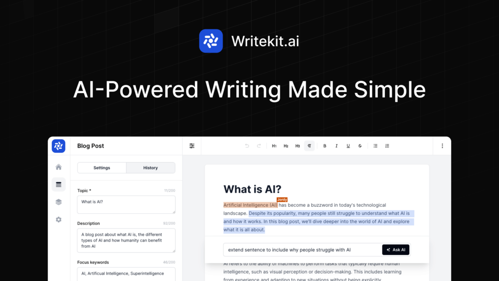 Writekit offers AI-integrated tools to simplify content production and boost creativity. From generating insightful additions to real-time team collaboration, Writekit is designed for writers and marketers who demand efficiency, quality, and a stress-free writing process.